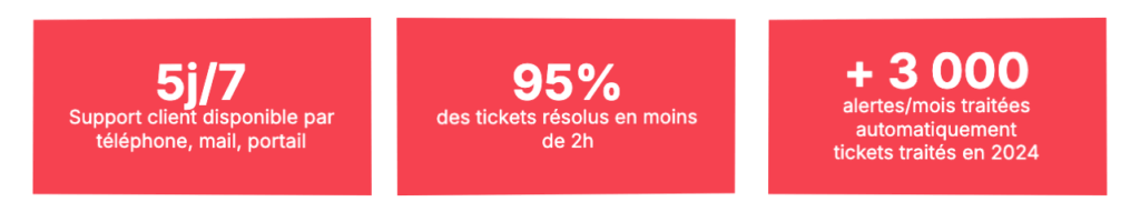 Nos clients bénéficient d’un accès direct à nos techniciens qualifiés, sans passer par des plateformes externes, assurant ainsi une réactivité optimale et une résolution rapide des incidents.